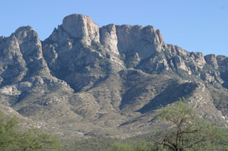 Tucson. Living for many years at the base of the magnificent Catalina Mountains north of Tucson, Rossi studies desert plants and wildlife while hiking and riding horseback in the hills and ravines. In the tradition of early pilgrimages and journeys through the Southwest, his solitary travels are a spiritual meditation. He knows the bajada well, that weathered slope at the foot of the mountains. In the rocky soil grow the saguaro cactus, palo verde, mesquite, and the most tenacious of all, the creosote bush. The earthy smell of creosote after a summer monsoon has no equal. Heard always are the songs of the white wing dove and Gamble's quail. Cottontails and blacktail jackrabbits, coyotes, white-tailed deer, and bighorn sheep graze the rocky slopes of Pusch Ridge. |